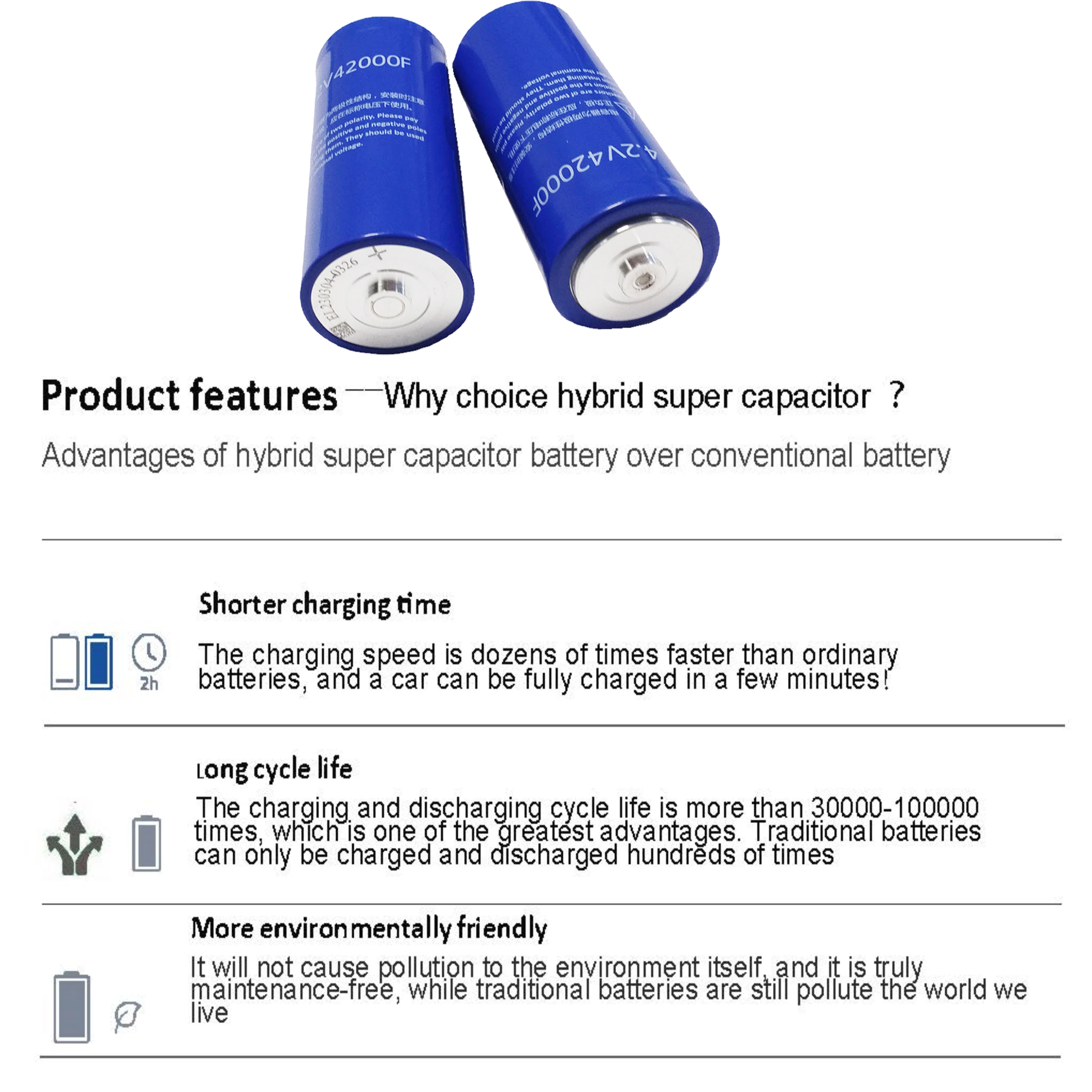 Hybrid supercapacitors have the characteristics of small size, large capacity, high power, ultra long lifespan, and good temperature characteristics. They have a wide range of product types, mainly wound cylindrical, while also considering various specifications of supercapacitors such as square and irregular modules. They cover large, medium, and small supercapacitors, as well as large capacity special supercapacitor single products. Different specifications of single capacitors can be customized for users Combination module and related energy control system.