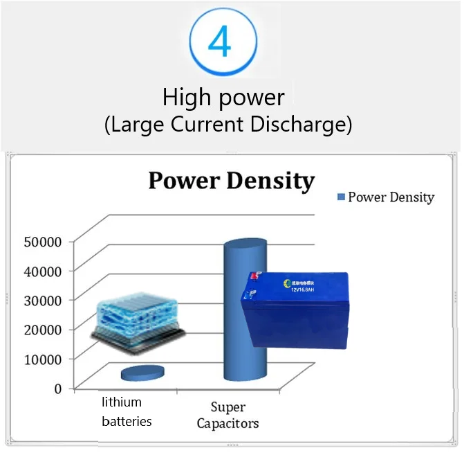 The supercapacitor module is a new energy package consisting of multiple supercapacitors connected in series, with a voltage balanced and stable discharge system and an aluminum alloy casing. The birth of supercapacitor modules has made up for the shortcomings of energy storage devices such as lead-acid batteries. The working temperature range of the supercapacitor module is between -40 ℃ and 65 ℃, which solves the problem of greatly reducing the efficiency of lead-acid batteries under cold outdoor conditions. In addition, the supercapacitor module not only has all the characteristics of a supercapacitor, but also has a status monitoring function, which can better achieve maintenance free and easy maintenance.